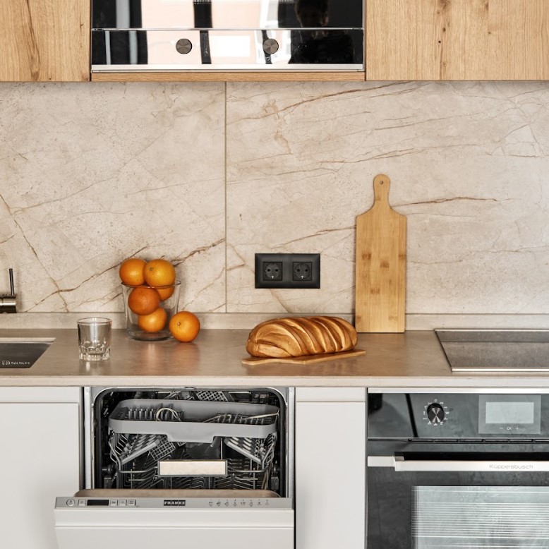 26 кухонь, 40 шкафов и рабочих столов, 40 комплектов мебели для ванных комнат и постирочных, 26 библиотек и гардеробных, 30 ТВ-зон – дизайнеры «Марии» постарались создать гармоничные и актуальные интерьеры для будущих жильцов ЖК «Адмирал». Для кухонь в современном стиле выбрали модель Jazz c фасадами из МДФ, окрашенными эмалью, и с фасадами из TSS-плит. Для неоклассических интерьеров клиентам предложат модели Camelia и Nicolle. Каркасы кухонь светло-серого цвета выполнили из ДСП компании Egger, столешницы – из искусственного камня Stаron и HI-MACS. Все кухни укомплектованы бытовой техникой Gorenje и варочными панелями с интегрированной вытяжкой Tesla. Клиенты получают жилье, полностью меблированное и укомплектованное техникой, позволяющее сразу вселиться и жить с комфортом.